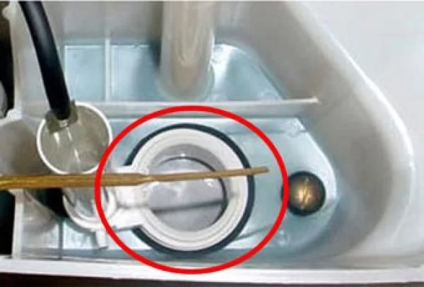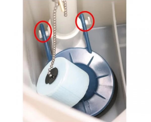 Mounted on the flush valve and keeps the water in the tank until flushed.