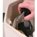 Located on the outside of the tank and is used to actuate the flush valve to initiate the flushing cycle. The chain or strap going from the handle assembly should have no more than 1/4″ of slack to keep the flapper from closing prematurely.